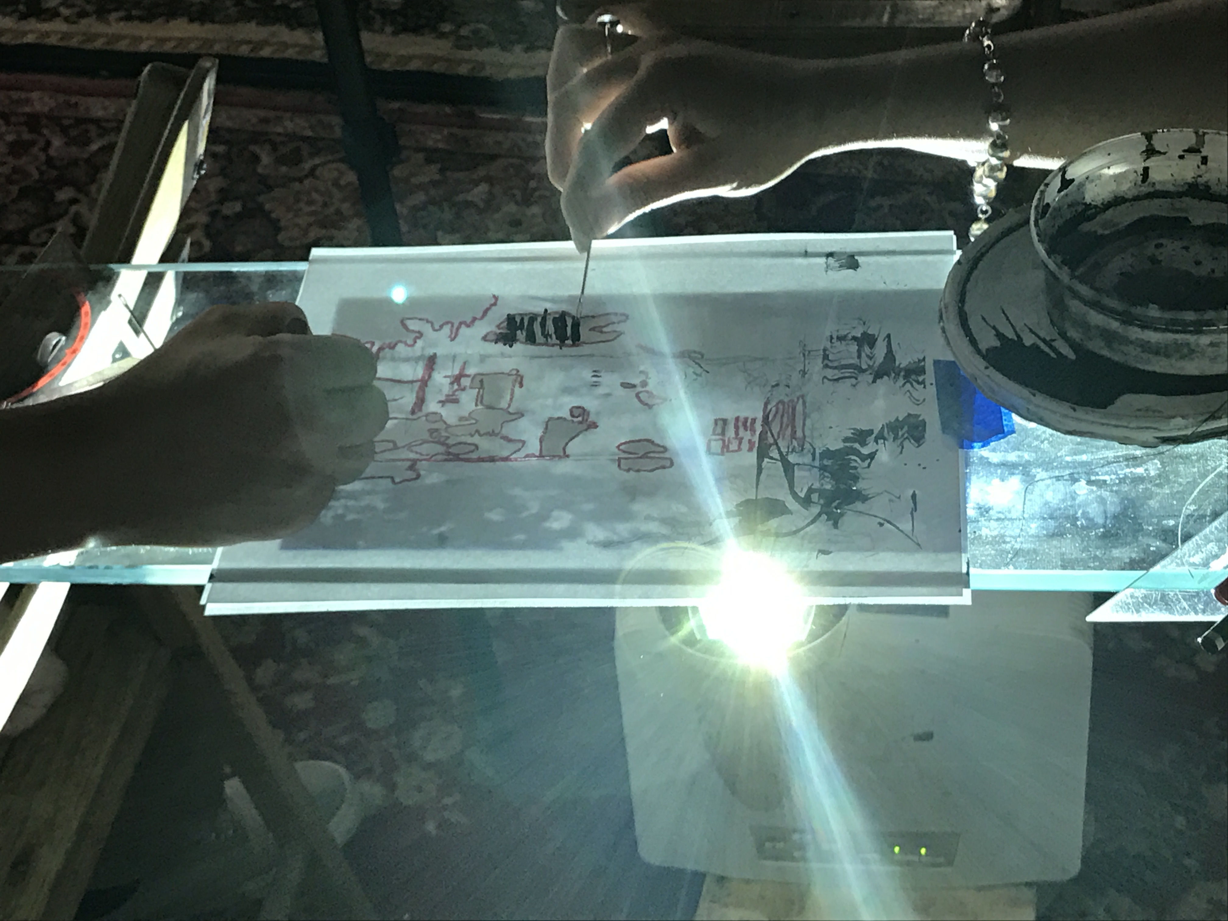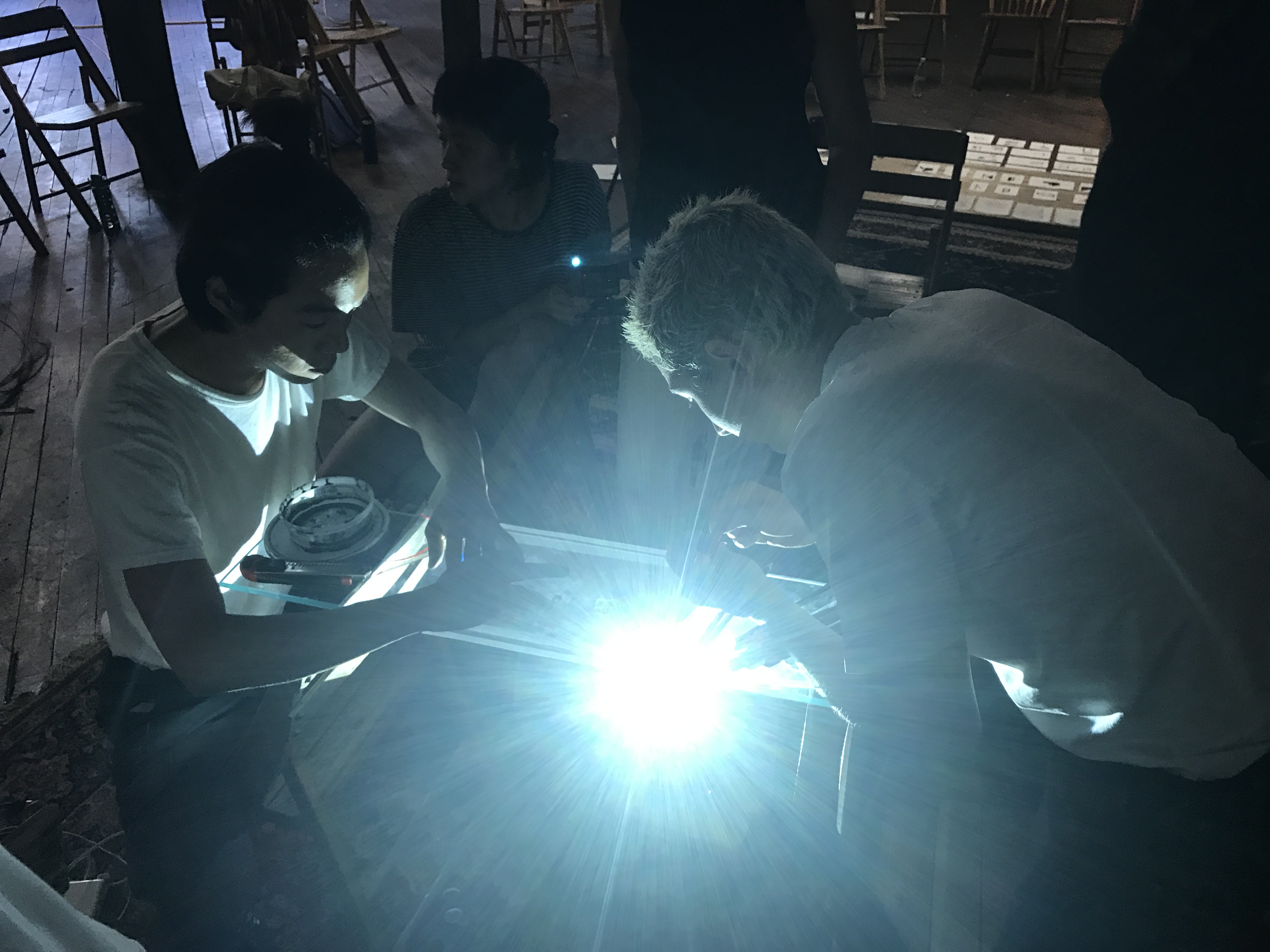 Workshop @ Arts Letters and Numbers by Ipek & Bahar Avanoglu, July 2018The workshop proposed the question of dissecting the projection of the Mill in relation to the question of daring to know. As opposed to a cartesian planar cut and section, the idea behind dissection isto explore through the act of cutting an opening.